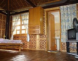 Each room is equipped with cable TV , refrigerator, and electric fan (there is no need of an A/C due to the prominent location directly on the beach with it’s own fresh and natural breeze), and we now have internet connection. The rooms have their own Toilets and Baths inside. The huts are big and can accommodate groups or big families of up to 8 to 12 people. We also have installed a movable divider door between the two huts, so if the need arises we can combine the two rooms and convert them into one huge room, good to hold a conference or seminar for 25 to 30 people. In front of the huts there is a long and comfortable beachfront terrace, where you can enjoy the view of the outlying islands of Siquior and Apo.