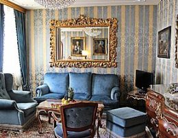This luxury 35 room / suite hotel complete with: Period furniture, marble bath, color/cable television, minibar, hairdryer, safe, direct dial telephones and In-room radio, silk wallpaper, plate glass, the rooms have decorated with old original oil paintings, orient carpets are covering the floor.